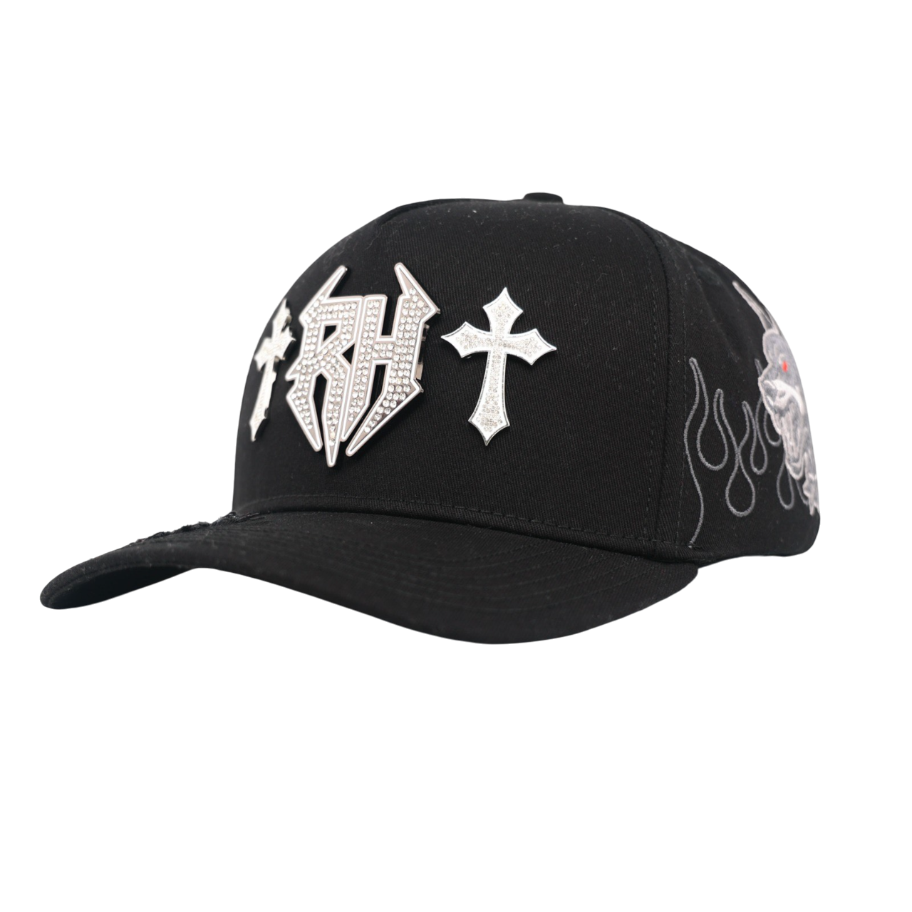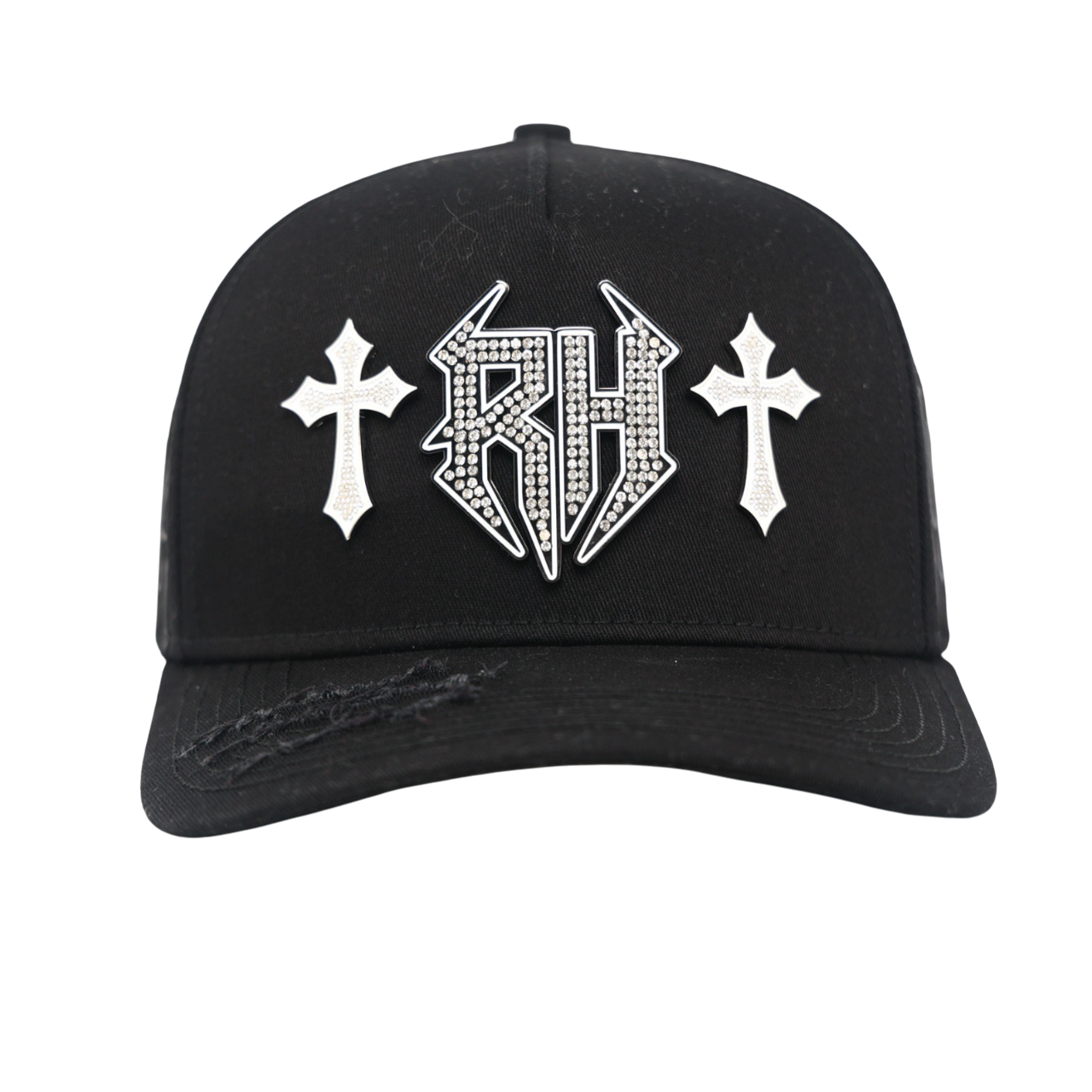 Fronted by a bold studded RH emblem flanked by two shining crosses, this piece announces presence before you even speak.
