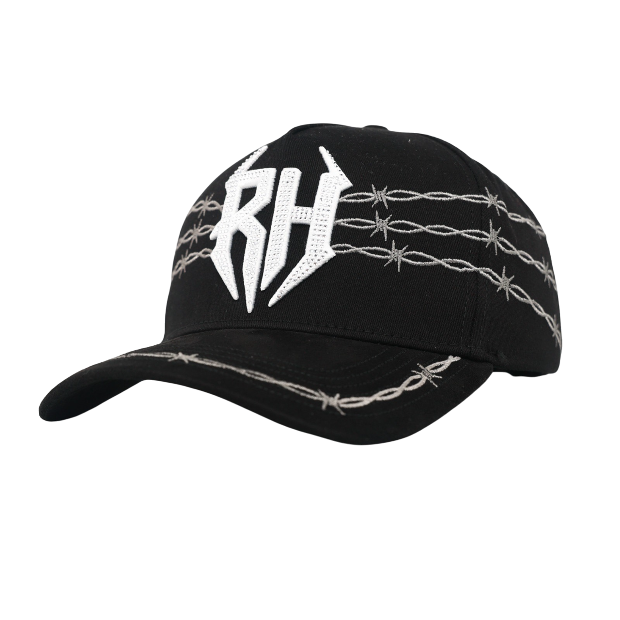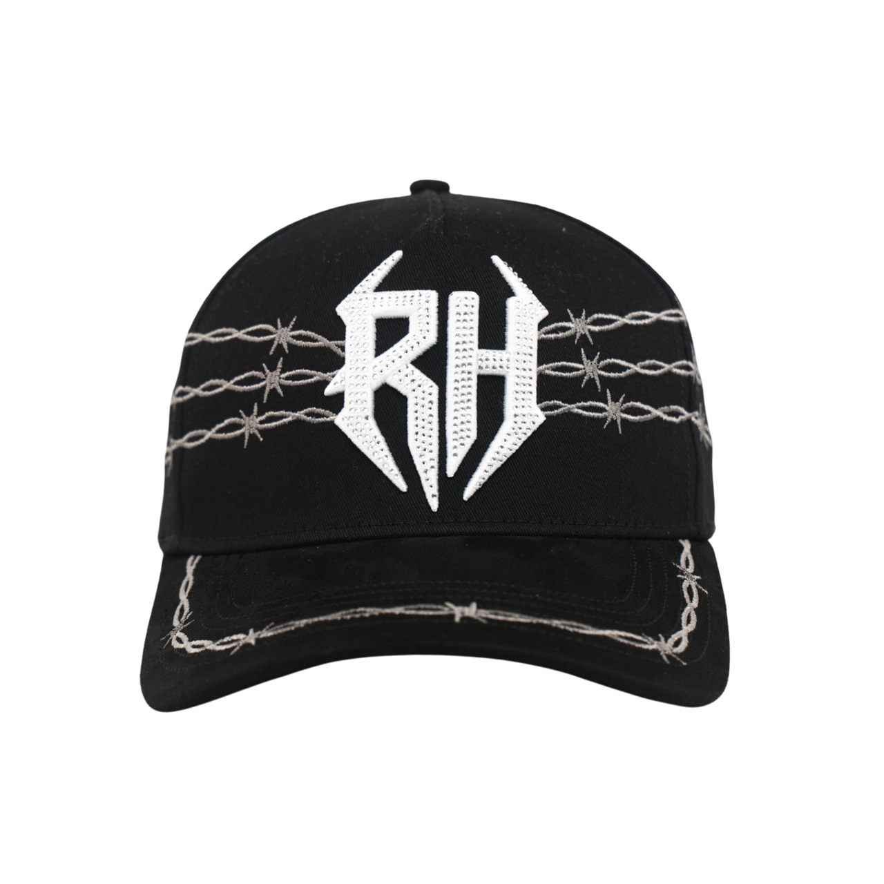 Step into the spotlight with the El Ruszo, a premium snapback designed with attitude, precision, and unmistakable streetwear energy. This black cap showcases a high-definition RH front logo 🛡️, surrounded by rugged barbed-wire embroidery 🔗 that wraps across the crown and visor for a bold, standout look.
